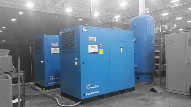 If your facility needs to stay clean at all times (like a food packaging facility), you 6factors-2should consider using a containment center around your air compressor. At some point in time, your compressor will experience inevitable oil leakages due to build up within the machine. A containment center will act as a gutter, capturing any oil and preventing it from spilling on your floors. The picture to the right shows a containment center on an Ingersoll Rand 200 HP rotary screw air compressor.