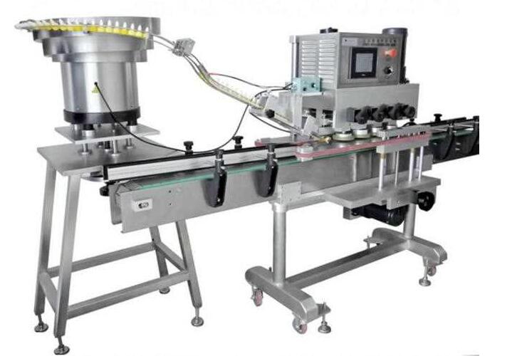 This machine is linear automatic capping machine, four speed motors are used to manage the cap, the cap, capping, conveying, in the capping process can automatically manage the lid, automatic cover lid, automatic capping. Thanks to clip bottle bottle belt holder, synchronous operation the cap, capping, the runtime will not pour bottles. Simple structure, good stability, easy to adjust, no need to replace the specifications of spare parts, can only be adjusted. For food, pharmaceutical, cosmetics, daily chemical, pesticide, chemical industry cylindrical bottle, rectangular flat shaped bottle cap bottle and seal.