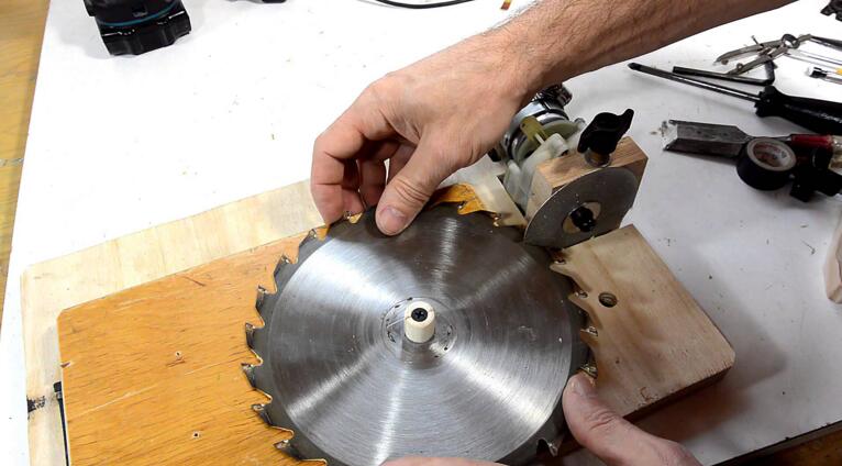 A dremel rotary tool is my recommendation, but there are many similar options you can use. Install a small diamond disk into your rotary tool. Apply tension to the blade so it is straight so you can rotate it by hand (gloved hand of course). We can finally turn on our rotary tool between 5,000 & 10,000 RPM. Use your non-dominant hand to pick the tooth & hold the blade while your dominant (my right) hand slowly & safely sharpens the tooth.