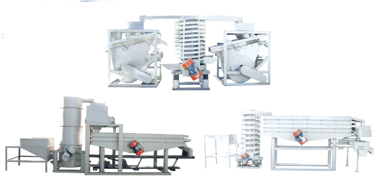 Shells separator consist of input hopper, elevator and two separators. It is used to sort out shells from almond kernels.