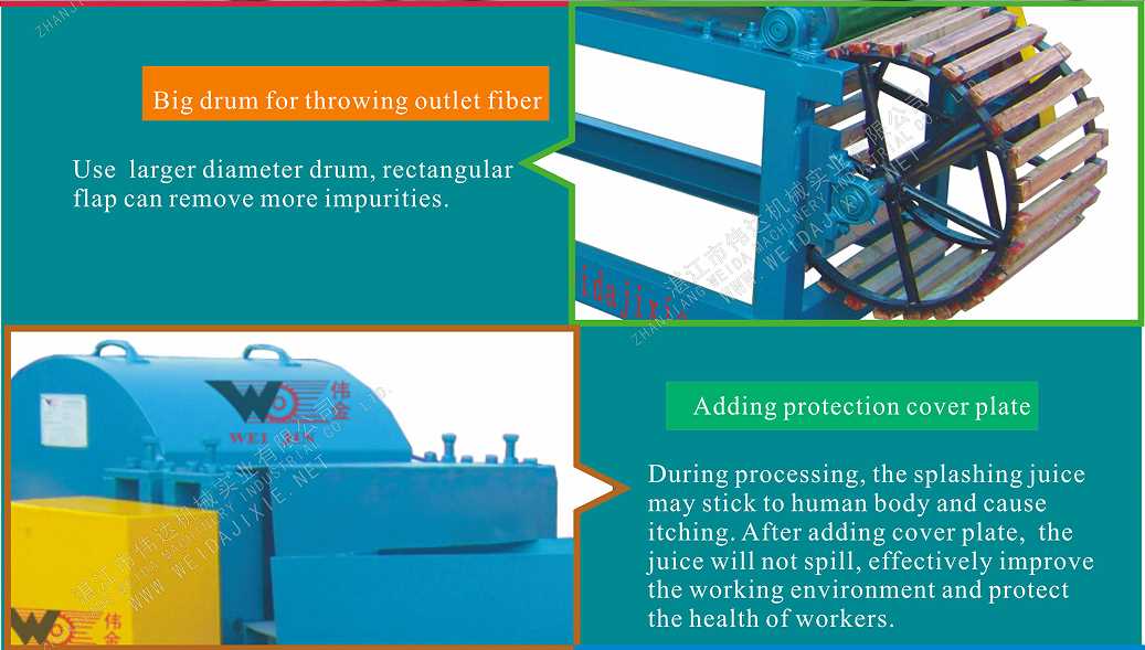 This automatic decorticator is suitable for different raw material such as sisal, jute, banana stem, pineapple leaf, hemp, ramie and so on.