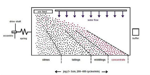 During the benificiation process,the mineral particles from the angle above the bed surface go to the slot,