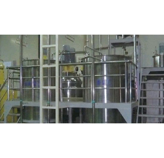 This complete equipment includes: vacuum emulsifying mixer, liquid raw material storage tank and pre-mixer, powder material air transporting conveyor, measuring, mixing hopper, finished paste feeding pump and storing tank, etc. All parts which contact with paste material are made of quality stainless steel and non-toxic material. Both inside and outside parts are polished well. This equipment is in conformity with food-grade sanitation requirement.All the motors ≥5.5KW are of Grade 2 Energy Consuming according to international standard.