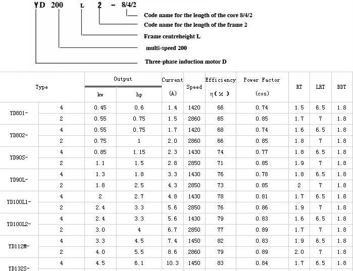 YD series pole-changing multi-speed induction motors alter its speed through changing the way of joining and the number of poles.