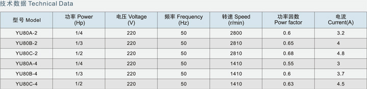 YU series single-phase steel-plate motors, are made of selected quality materials and inside with heat-dissipation design. YU motors have good performance, safety and reliable operation while with low noise, small size, commonly used as industrial equipment.
