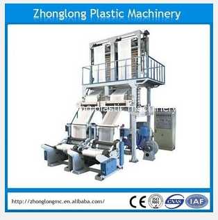 It is one screw double heads PE plastic film blowing machine for blowing PE(HDPE, LDPE, LLDPE), etc.