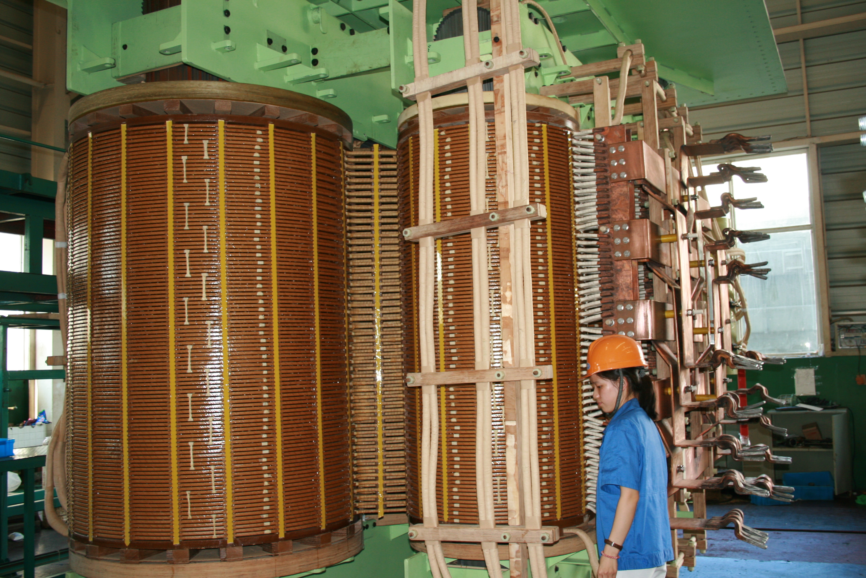 3)    The winding adopts radial “0” margin designed, between the core and the paper sleeve of LV winding, and between the LV, HV, voltage-regulating windings, as well as before insertion of stays and shroud plate they are fully dried and tightly matched to ensure extremely good compactness and concentricity of the entire winding.