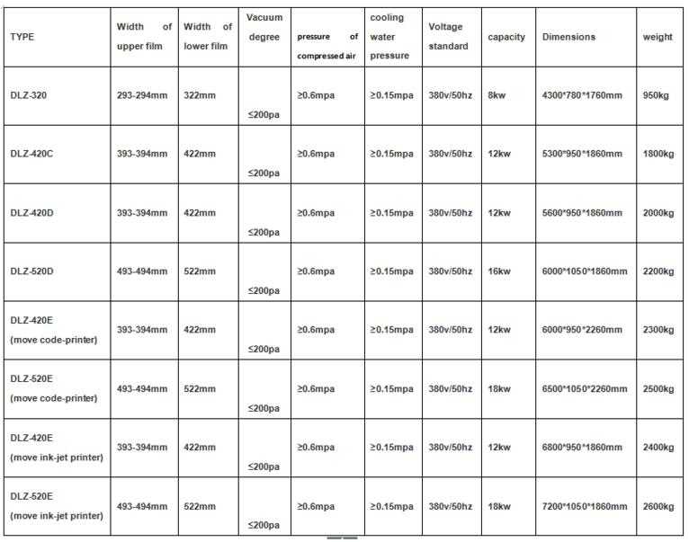 DLZ-320, DLZ-420, DLZ-520 Automatic continuous Stretch Vacuum Packing Machine, Efficient Convenient Health and Easy operation.