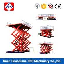 Jinan Huashinuo CNC Machinery Co.,Ltd is a company which is the leading manufacturers of scissors lift tables. Which is used for logistics, warehouse, factory and construction.as the biggest producer in making aerial work platform, cylinder hydraulic aerial work platform, boom lift and dock leveler,We have experience for over 20 years and gained conciderable experience and have developed the design.