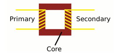 A transformer is based on a very simple fact about electricity: when a fluctuating electric current flows through a wire, it generates a magnetic field (an invisible pattern of magnetism) or "magnetic flux" all around it. The strength of the magnetism (which has the rather technical name of magnetic flux density) is directly related to the size of the electric current. So the bigger the current, the stronger the magnetic field. Now there's another interesting fact about electricity too. When a magnetic field fluctuates around a piece of wire, it generates an electric current in the wire. So if we put a second coil of wire next to the first one, and send a fluctuating electric current into the first coil, we will create an electric current in the second wire. The current in the first coil is usually called the primary current and the current in the second wire is (surprise, surprise) the secondary current. What we've done here is pass an electric current through empty space from one coil of wire to another. This is called electromagnetic induction because the current in the first coil causes (or "induces") a current in the second coil. We can make electrical energy pass more efficiently from one coil to the other by wrapping them around a soft iron bar (sometimes called a core):