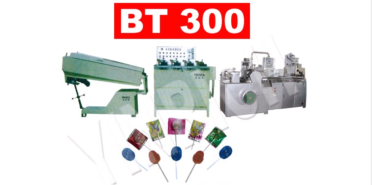 BT300 die-formed flat-type lollipop production line is composed of warm-keeping batch roller/linear machine, flat-type lollipop forming /wrapping machine.The Line is used for produce different kinds of flat-type/irregular flat-shape die-formed lollipop.