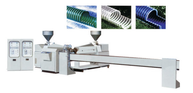 machine is used to produce PVC steel wire reinforced transparent pipes.The pipe wall is made of transparent PVC plastic.In the pipe innerwall,there are spiral steel wire.The kind of pipe has the advantage of extrusion resistance,corrosion resistance,static electricity resistance,antihigh pressure and good running.It is suitable for the conveying high pressure or combustible gas and liquid,heavy suction and delivery of liquid sludge. It is mainly used in fields machinery,such as chemical industry,building,irrigation and vacuum pumps,etc.