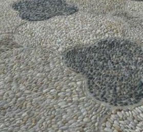 Mesh backed pebble mosaic