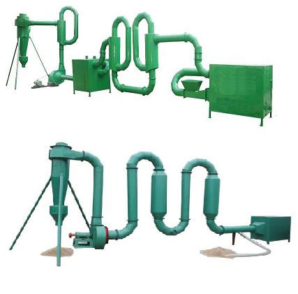 Wet biomass materials are fed into pipe dryer by conveying device, at the same time, heated air is driven to the dryer. Then the two are fully blended and move forward inside the whole pipes due to the powerful fan blower suction. Moisture evaporates when the biomass materials go through all the pipe. At the discharging hole material is released.