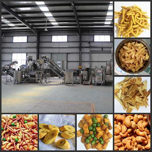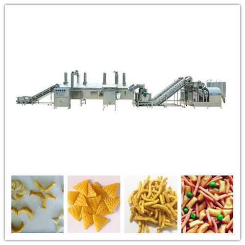 Continuous puffed snacks frying production line is used for frying of puffed snacks such as corn chips, kurkures, rice crackers, samosas, prawn chips, bugles, cheetos, pellets and etc.