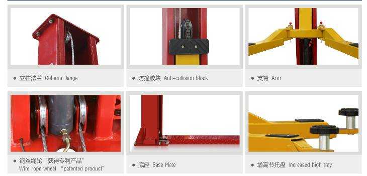 2. Adopt double cylinder,4X4 higher and stronger chain, the wire rope balance system.