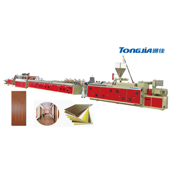 This Wood Plastic Panel Production Line is designed according to international latest technology, mixed PVC, PP, PE, PS with plant fiber symmetrically. It adopts high-efficiency conical double-screw extruder with forcible cooling system to extrude and form. The wood plastic panel out from our line has features of green environment protection, damp proof, antisepticise and not distortion, thus suitable for processing method of wood and can be recycled to reuse. It has been widely used in wide door, partition panel, construction template, base plate of container, furnish panel, etc.