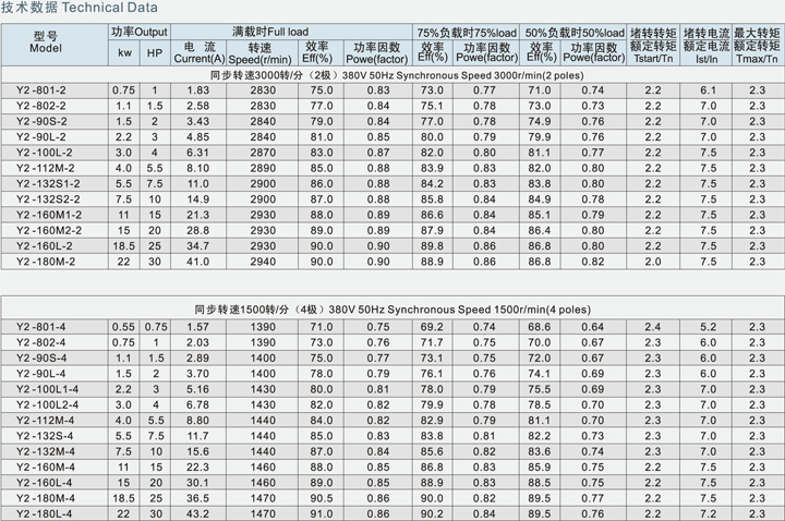 Adopting the national uniform design,Y2 series three-phase induction motors, are conformity with IEC34-1 and JB/t8680.1-1998 standards,also up to the international level 90’as substitute of Y2 series induction motors, It possesses sophisticated features such as new structure,good appearance, slight vibration,low noise etc.