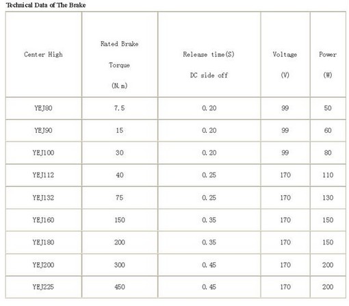 YEJ series electromagnetic brake three-phase induction motors Operating conditions: