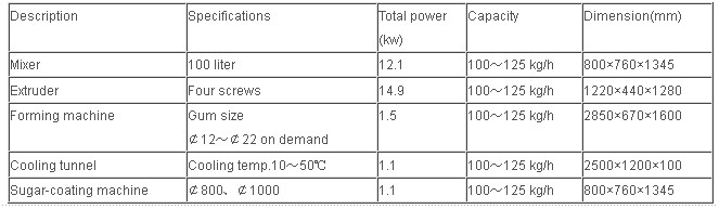 YP-150 abnormal bubble gum producing line consists of mixer, extruder, forming machine, cooling tunnel, and sugar-coating machine. It is with pleasant shape and reliable performance. The ball-type bubble gum producing line is easy to be operated and maintained.